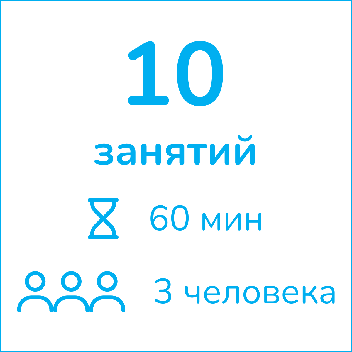 - Продолжительность одного занятия: 60 минут